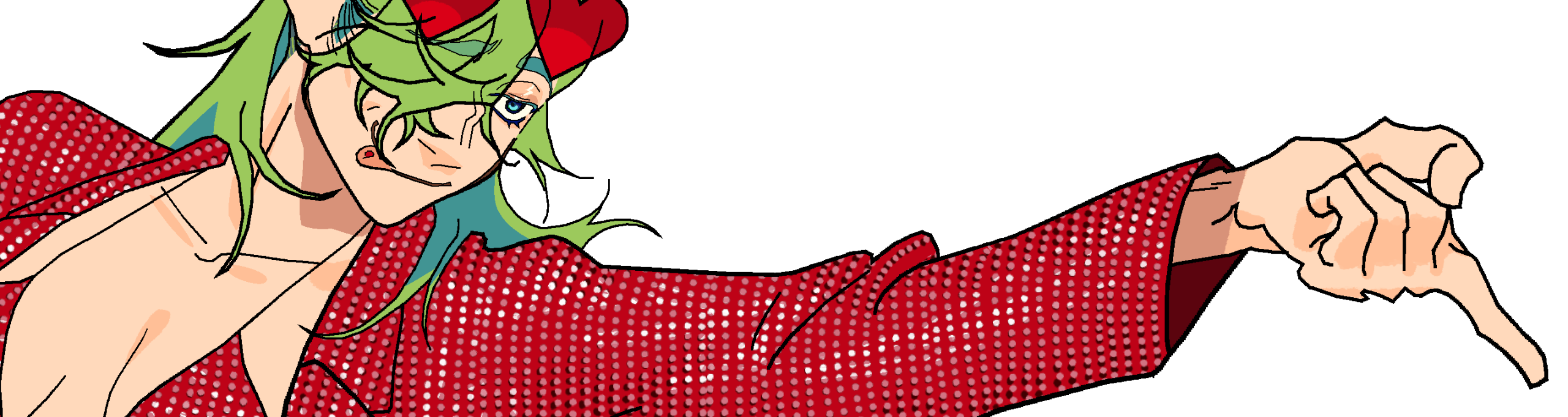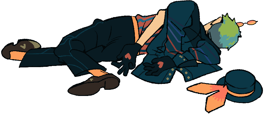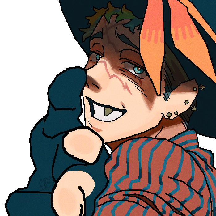 ✱ Arts and credits. Most of the art you see here was made by me or by my friends, and will all be credited in the #credits tab of this carrd. When I'm rich and famous, this guy will be getting commissions of him as well.